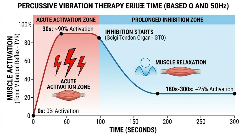 活性化ゾーン(0〜30秒): 当て始めてから30秒までは、神経が興奮し、筋肉の活動レベルが急上昇します(筋肉の覚醒)。
